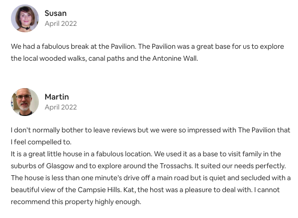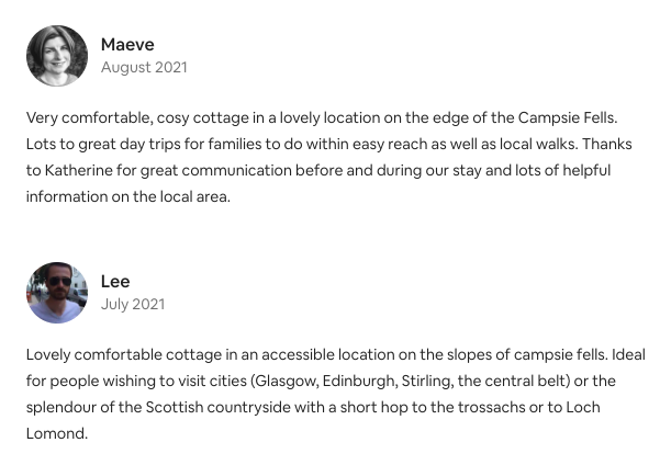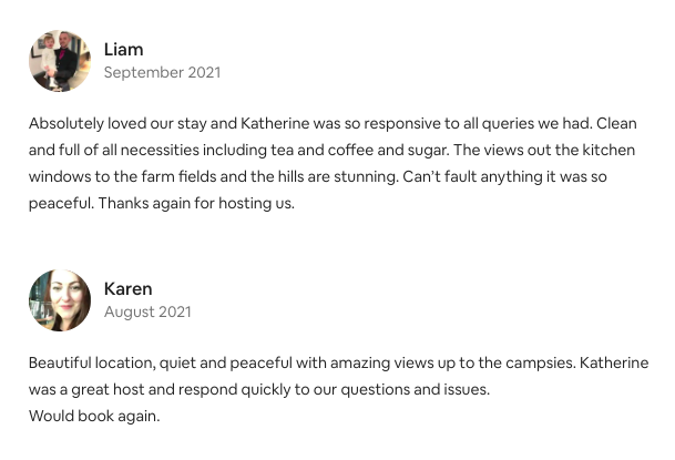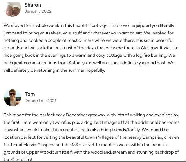 These are reviews from our AirBnB listing but we’d be really grateful if you would like to review our cottages on google.