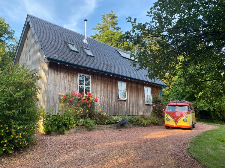 This warm, wooden-clad cottage sits in beautiful gardens and woodland at the foot of the Campsie hills. The double-height living area with wood-burning stove leads onto an open plan kitchen and dining area. Also downstairs is a single room and a room with twin beds. The family bathroom has a separate shower and bath. Upstairs is a double bedroom with en suite. The cottage has ramp access and an accessible bathroom and welcomes a well-behaved pet.