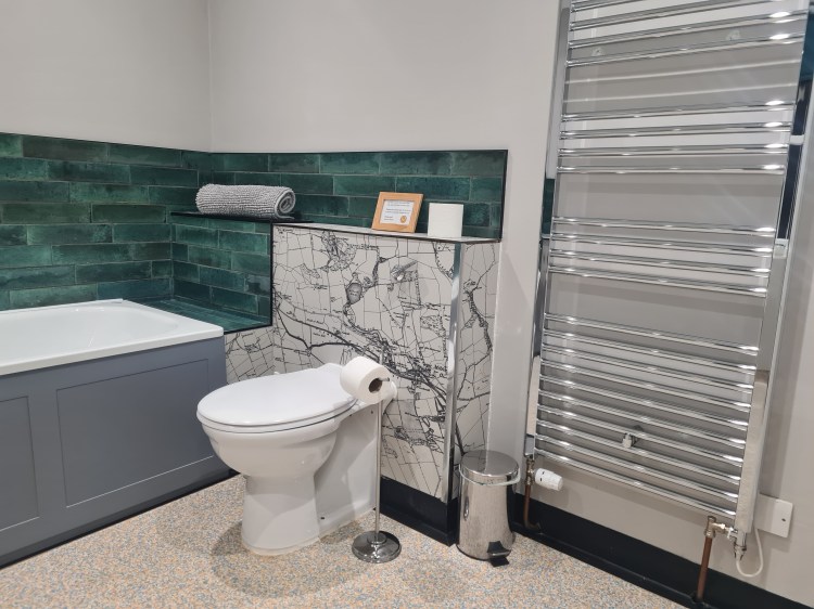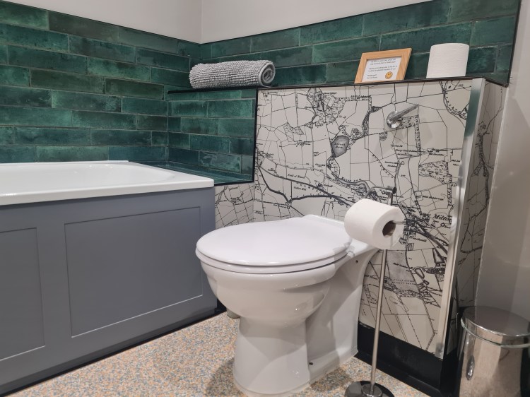 Bathroom: With bath, wet room area, toilet, shower seat and grab rails (wheelchair access).