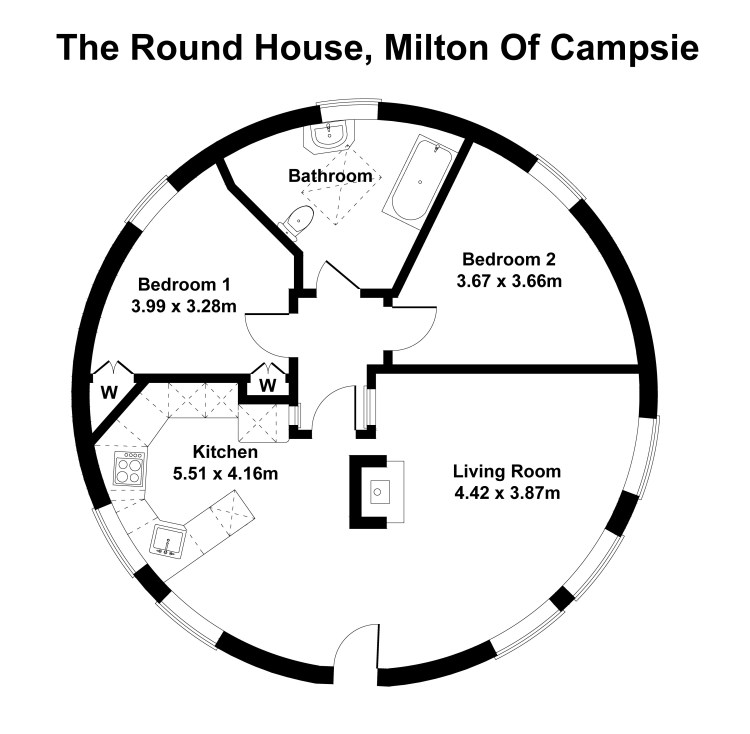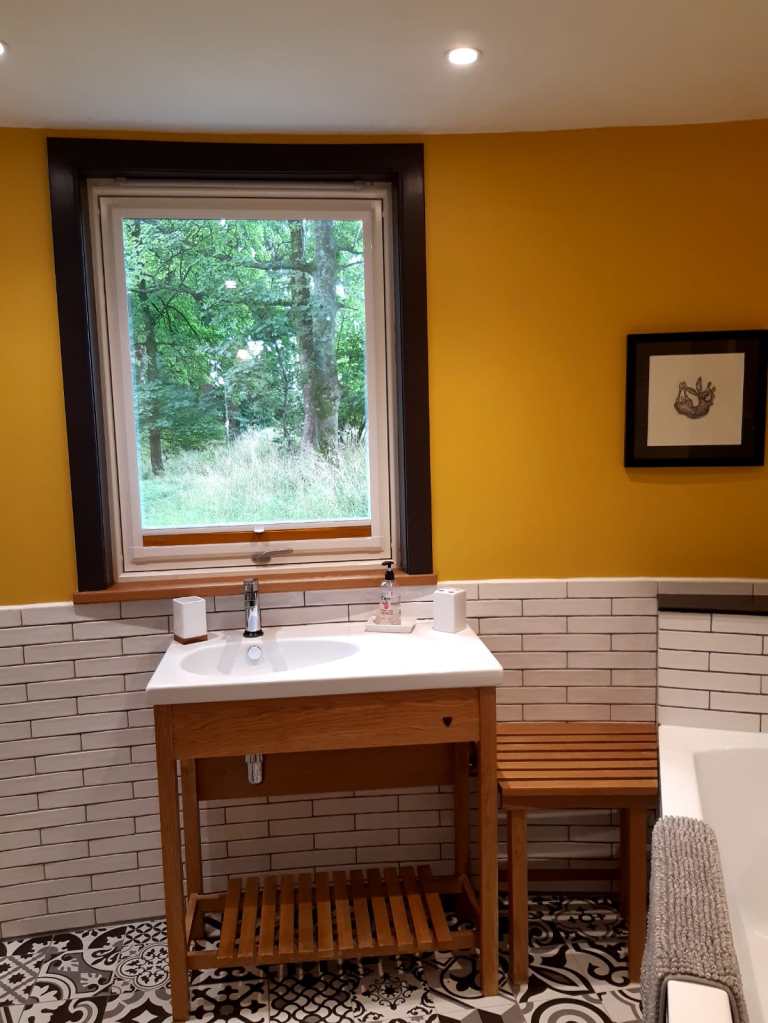 The Roundhouse sleeps 4 in a double and a twin room and is situated in extensive private woodlands and on the edge of open countryside. Built in 2018, it is finished to a high specification with wood-burning stove and big windows with views of the Campsie Hills and open countryside. The Roundhouse is an ideal base to explore the Trossachs, Loch Lomond and Bute & Arran and is really close to Glasgow and half an hour from Edinburgh by train. Round walls, grass roof, and hand crafted interior make a stay in the Roundhouse a unique experience.