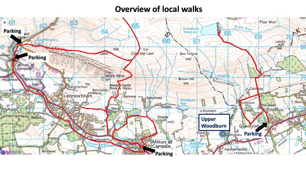 There are some good resources for local walks here: www.thecampsies.co.uk